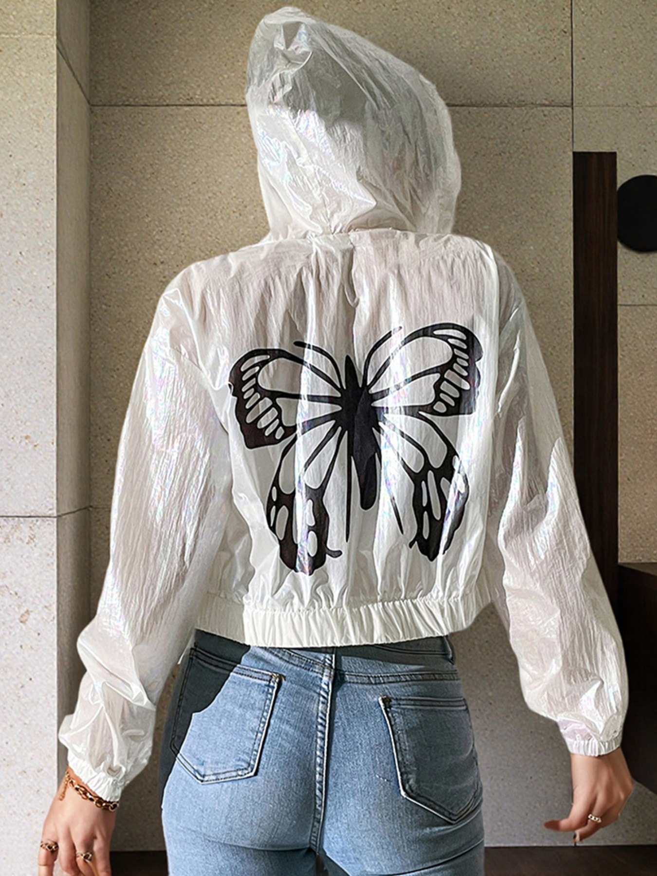Butterfly Back Zip Up Hooded Jacket