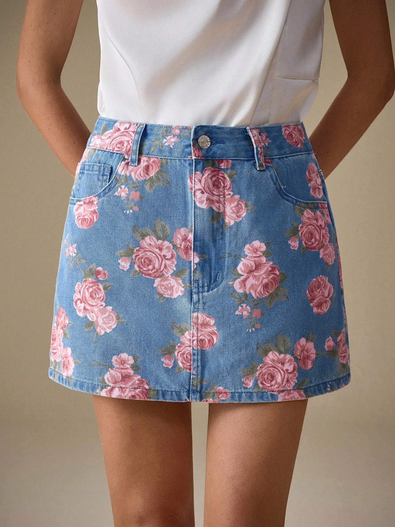 Floral Print Denim Skirt