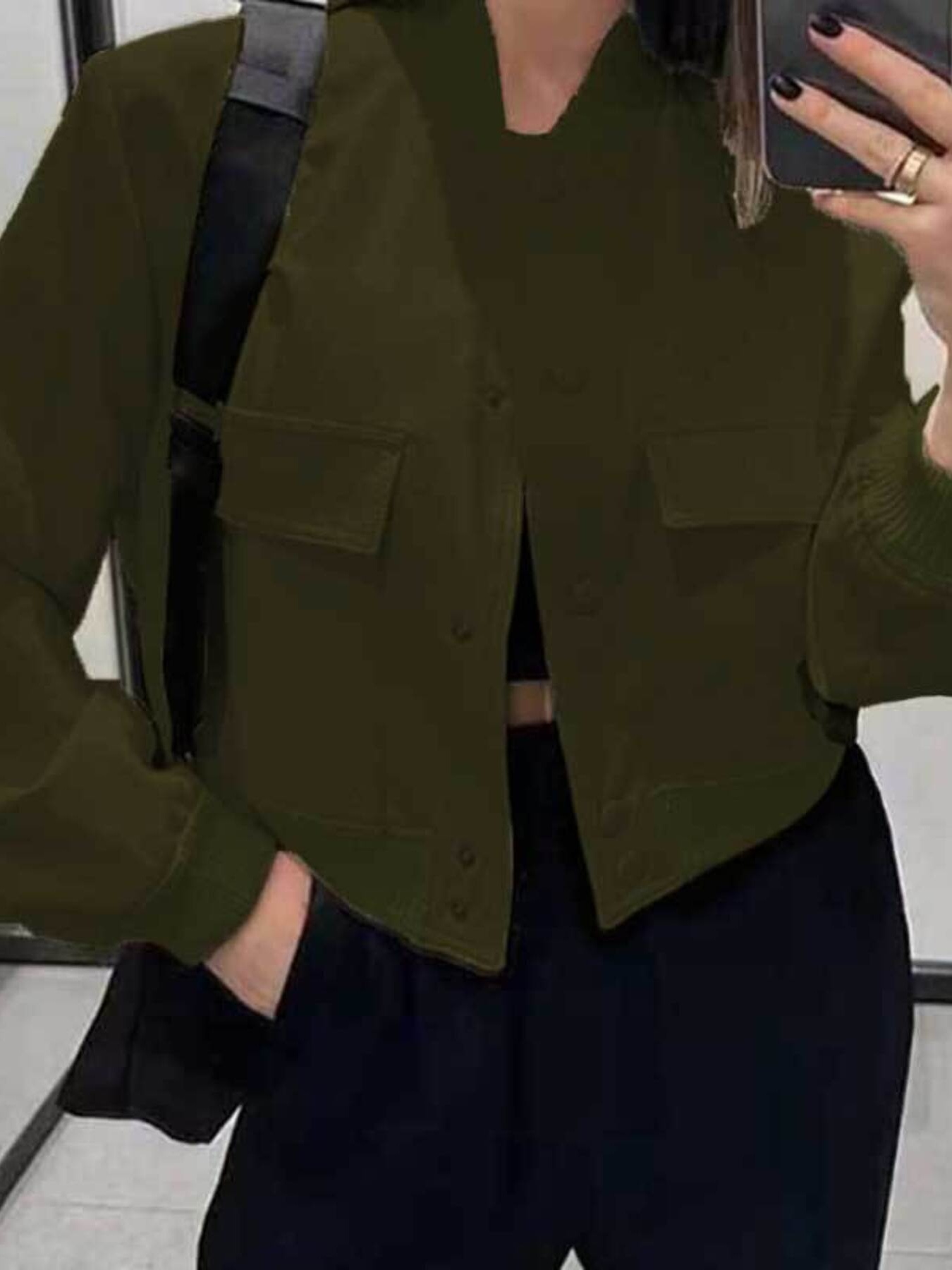 Full Size Snap Down Long Sleeve Jacket Plus Size
