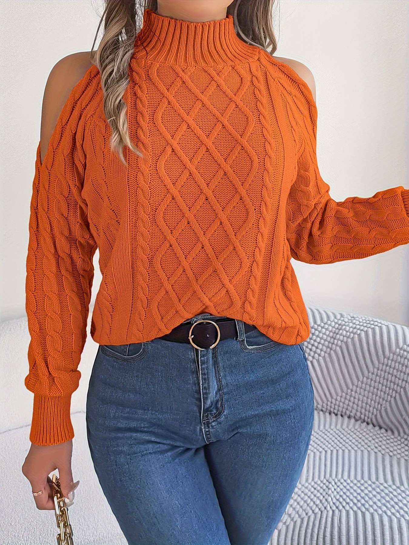 Cable Knit Cold Shoulder Turtleneck Sweater
