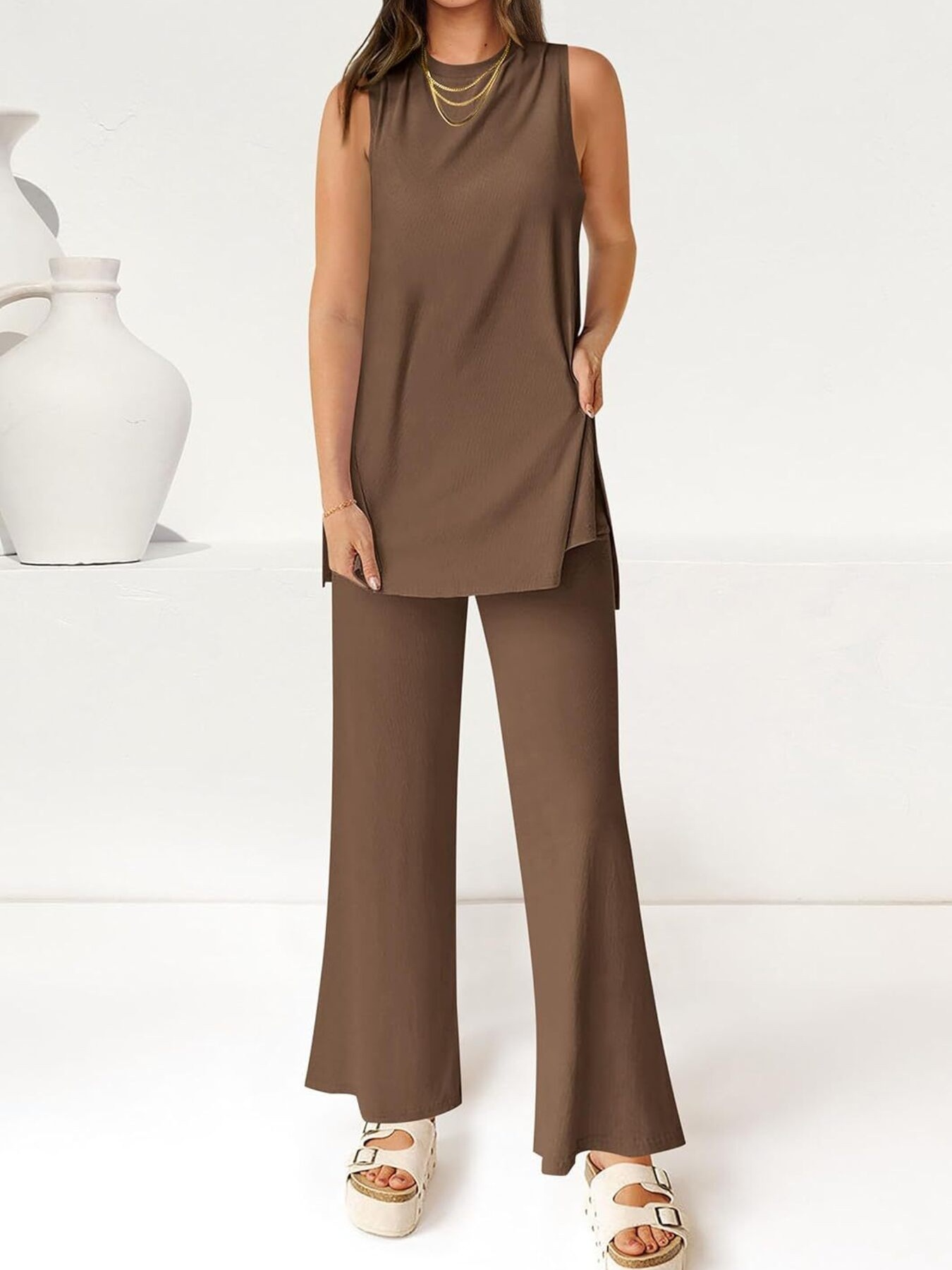 Round Neck Tank And Pants Set
