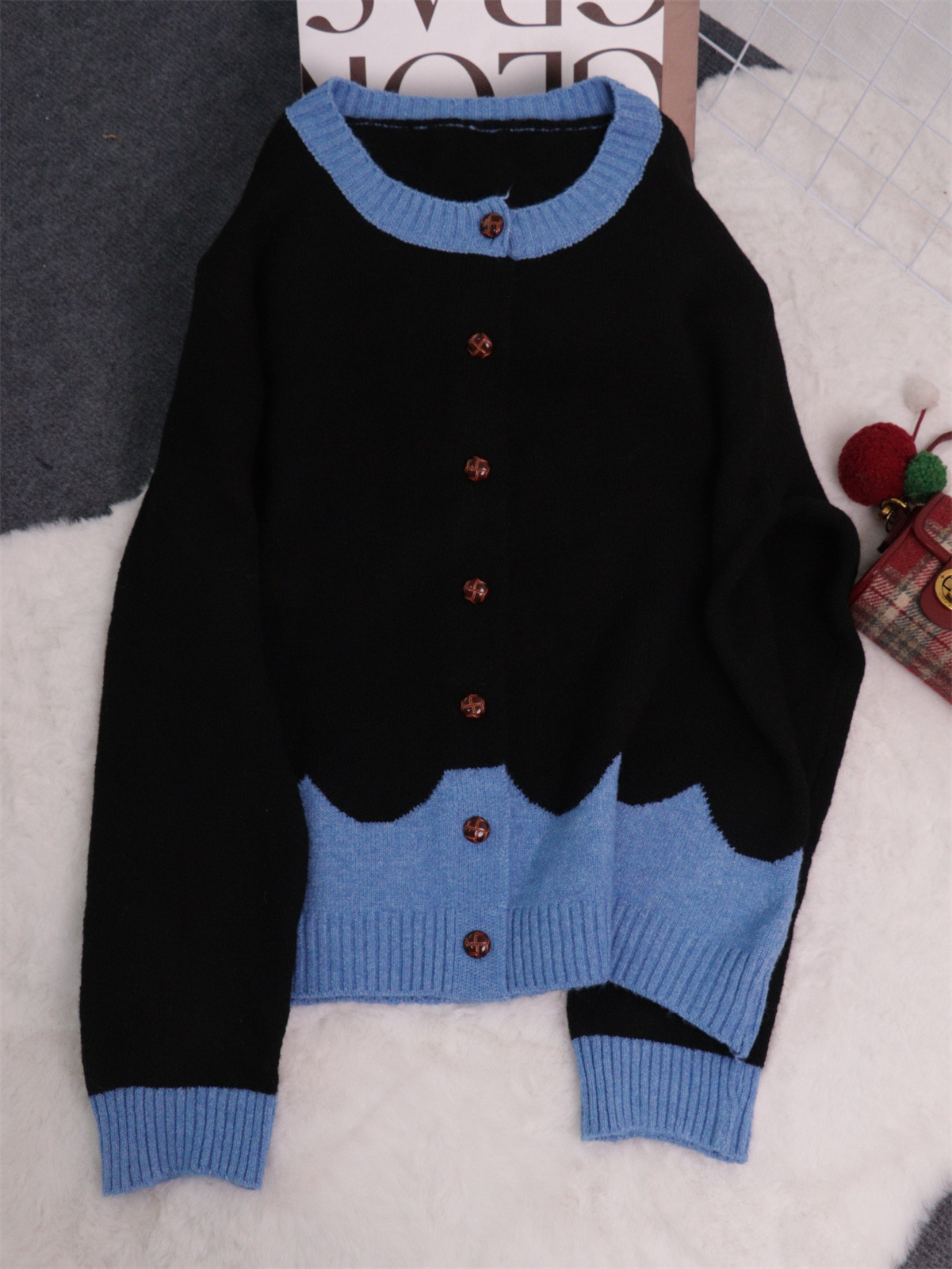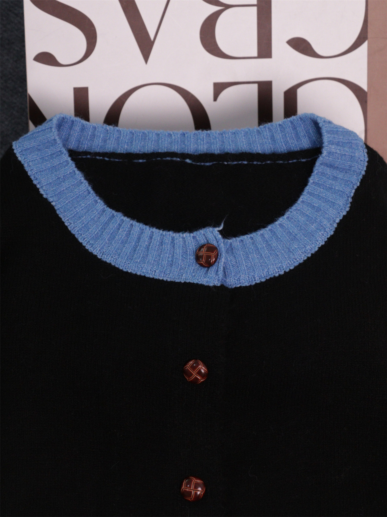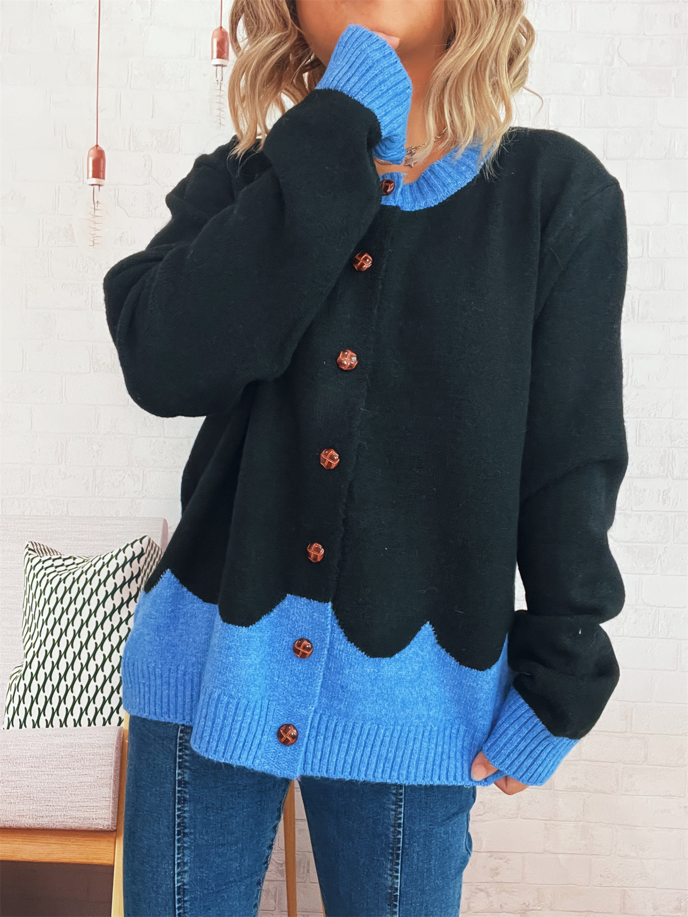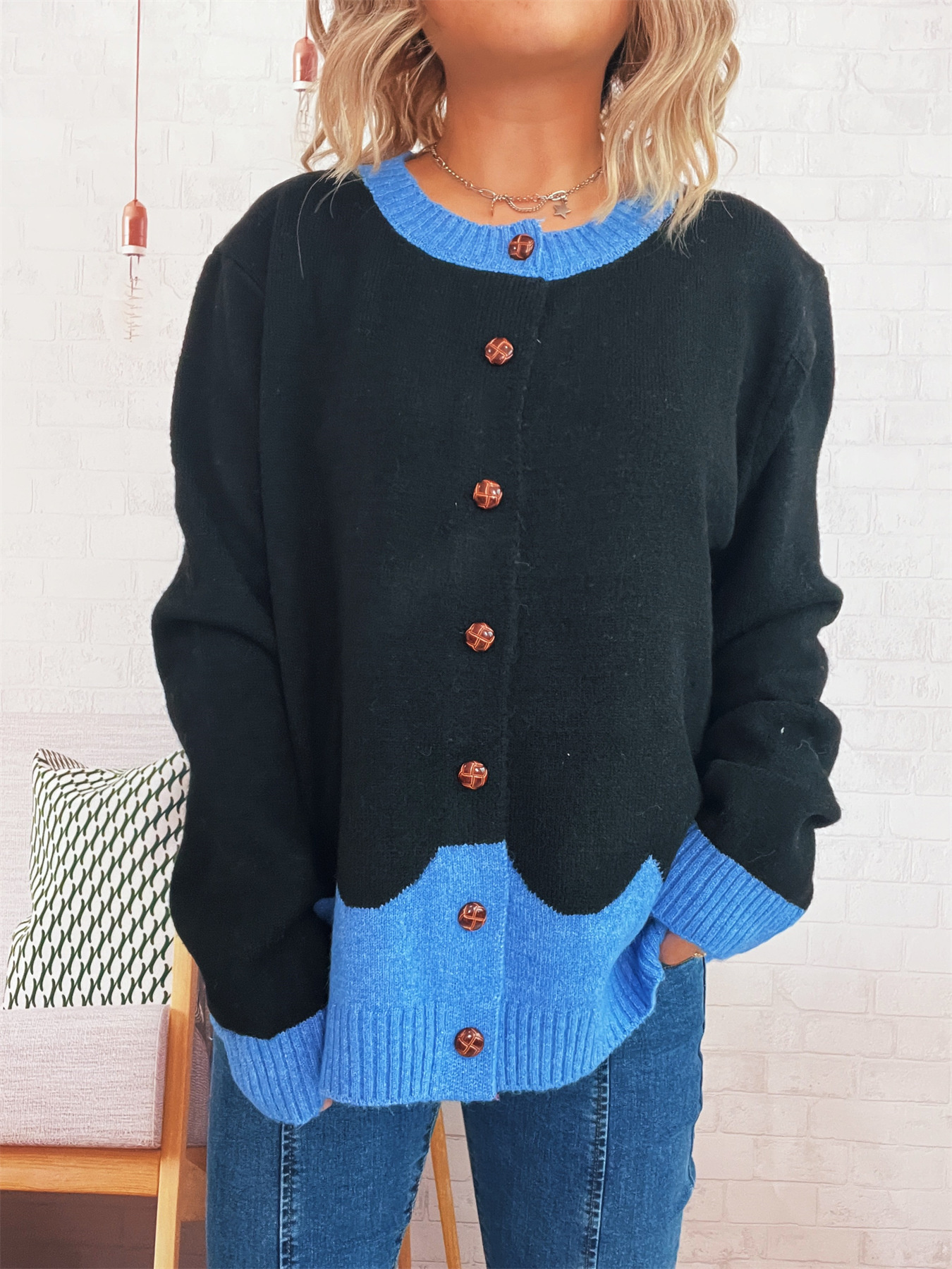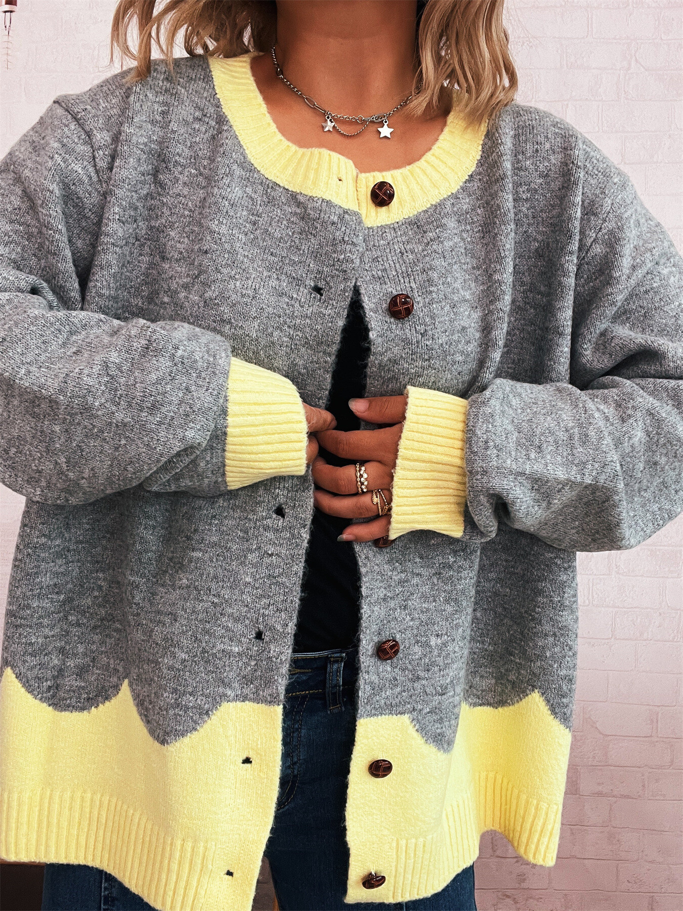 Button-Front Contrast Trim Cardigan