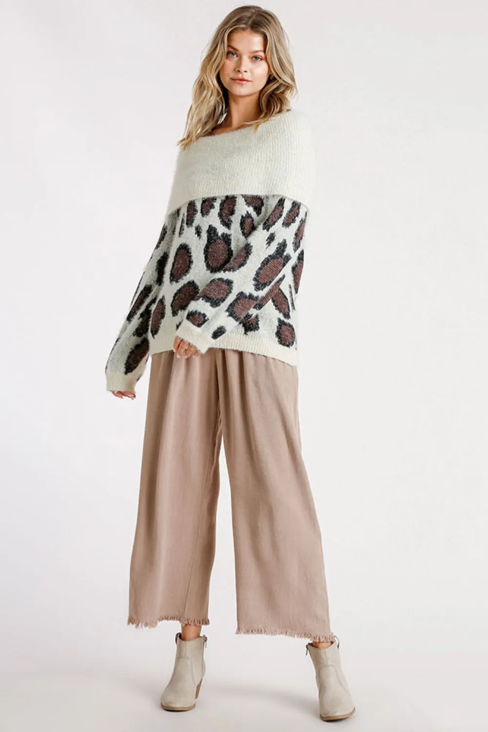Umgee Full Size Leopard Off-Shoulder Long Sleeve Sweater Plus Size