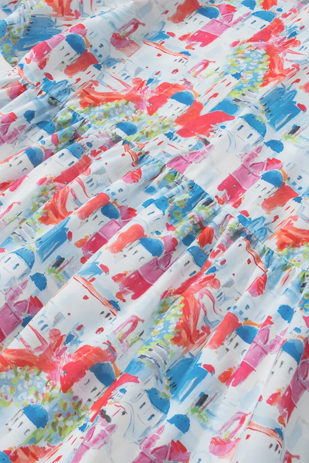 Printed Round Neck Puff Sleeve Blouse