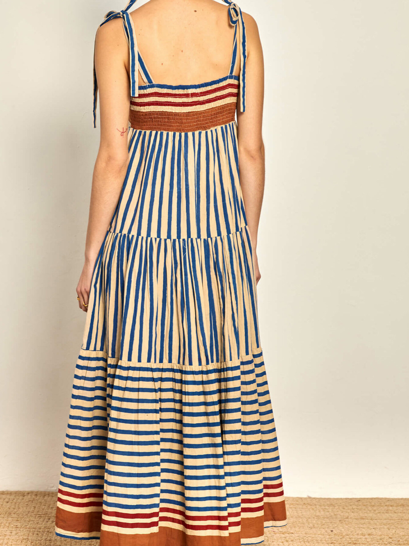 Striped Tie-Shoulder Tiered Maxi Dress