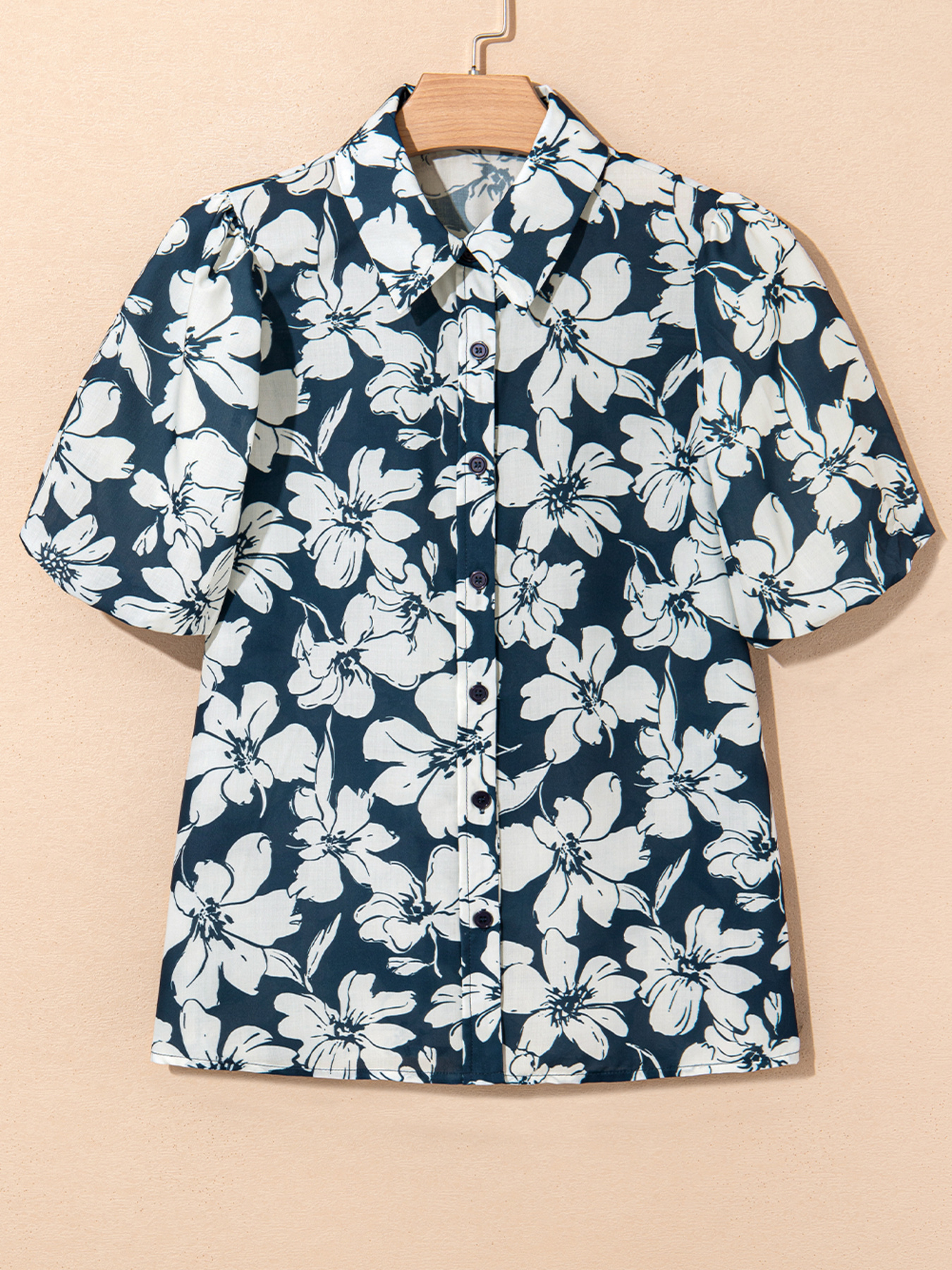 Floral Short Puff Sleeve Shirt