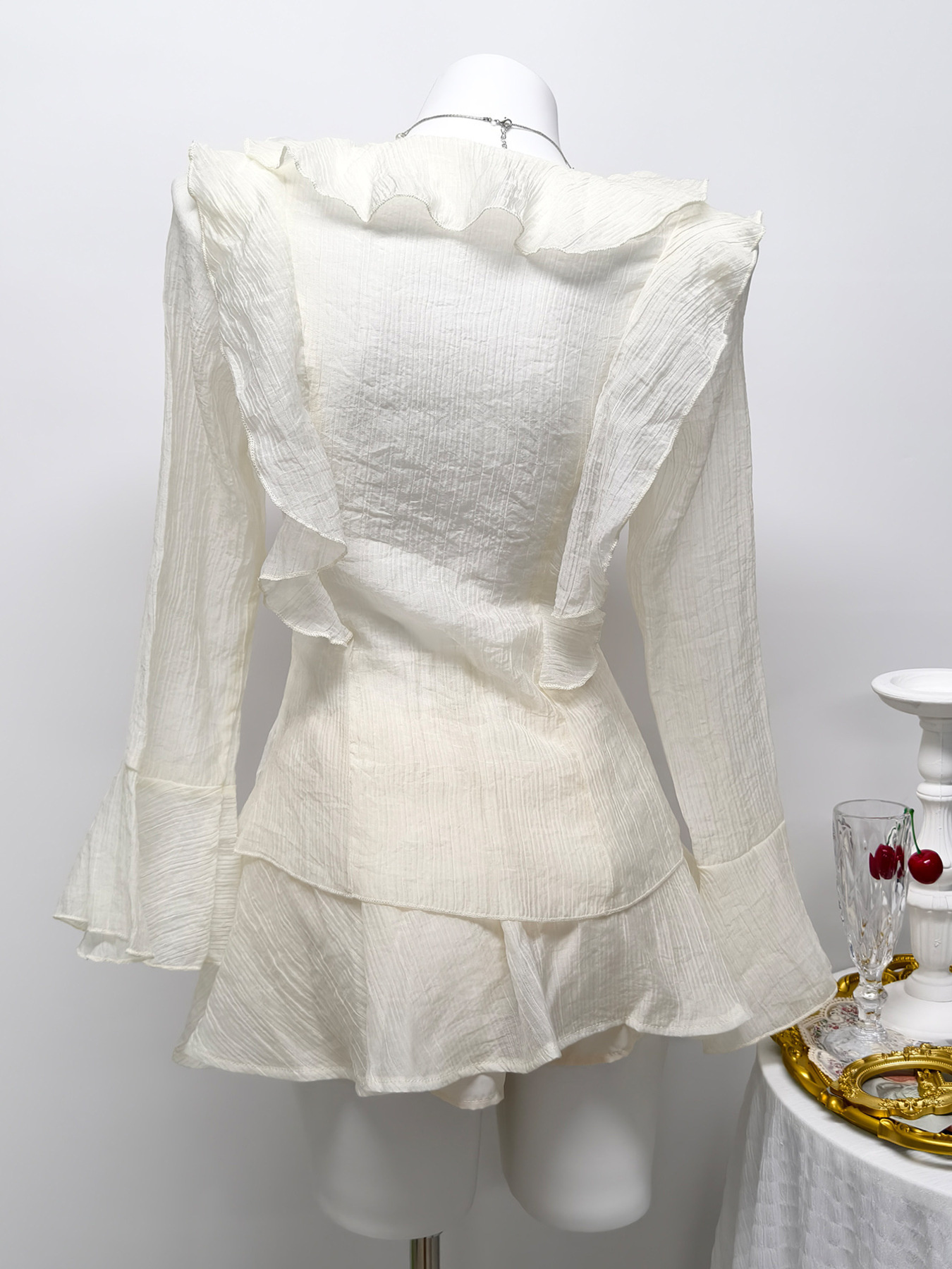 Ruffle Trimmed Blouse And Skirt Set