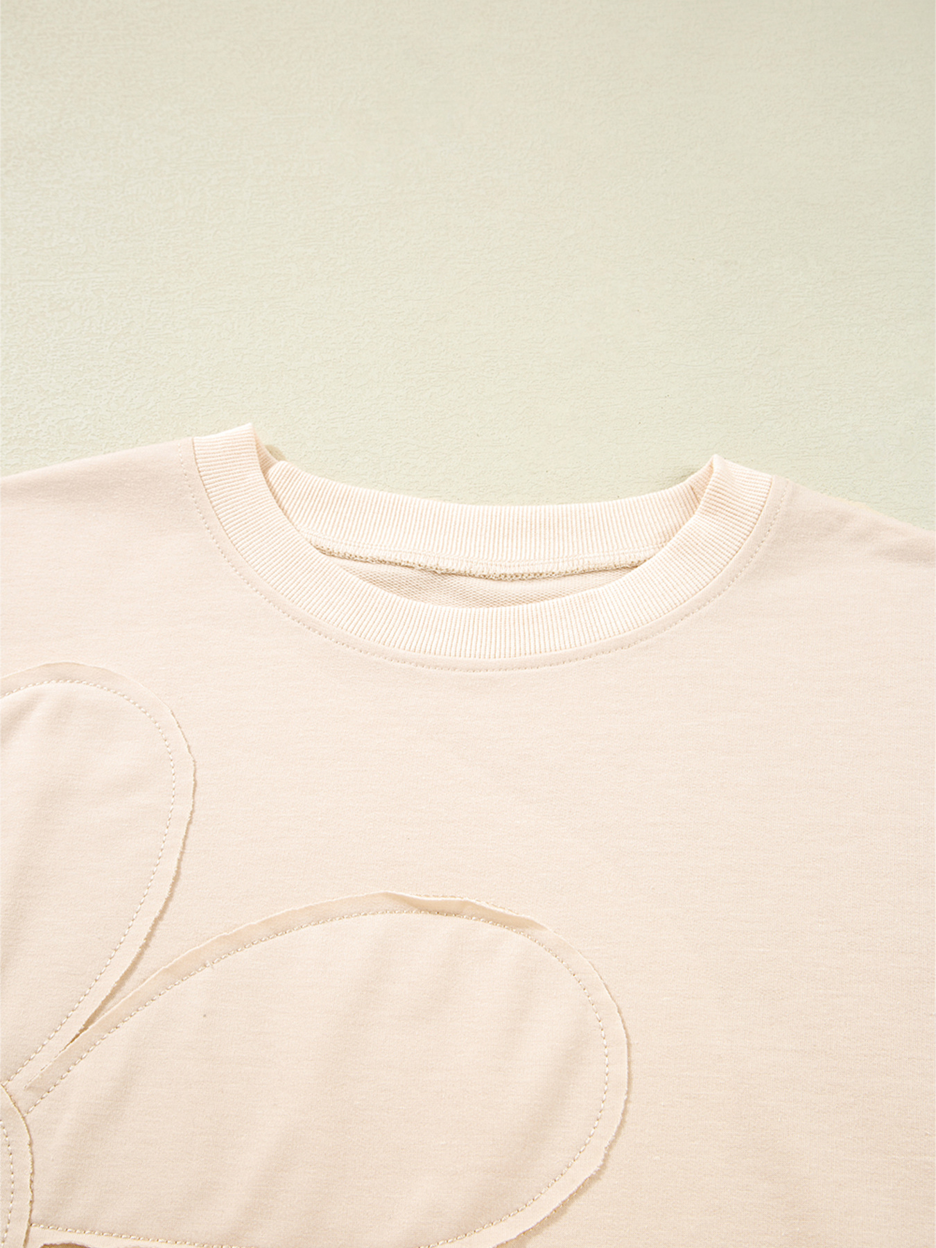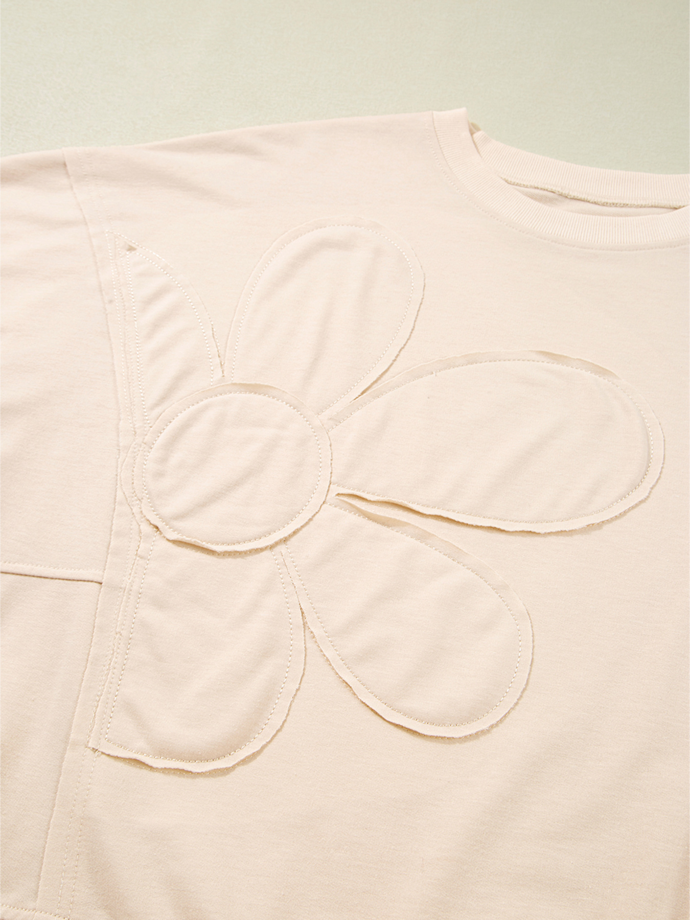 Raw Edge Flower Patch Drop Shoulder Casual Top