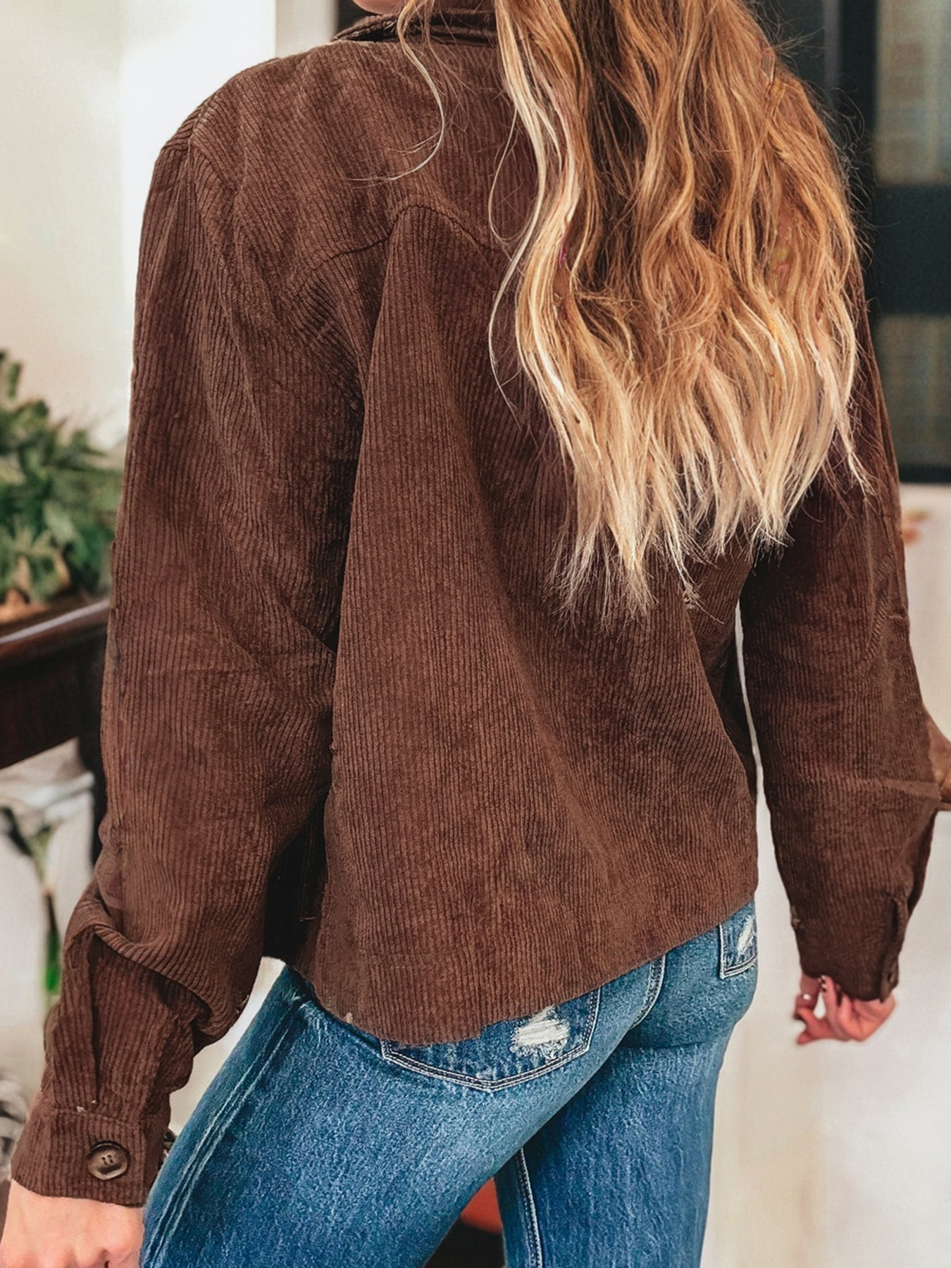 Floral Embroidered Collar Button Front Corduroy Jacket