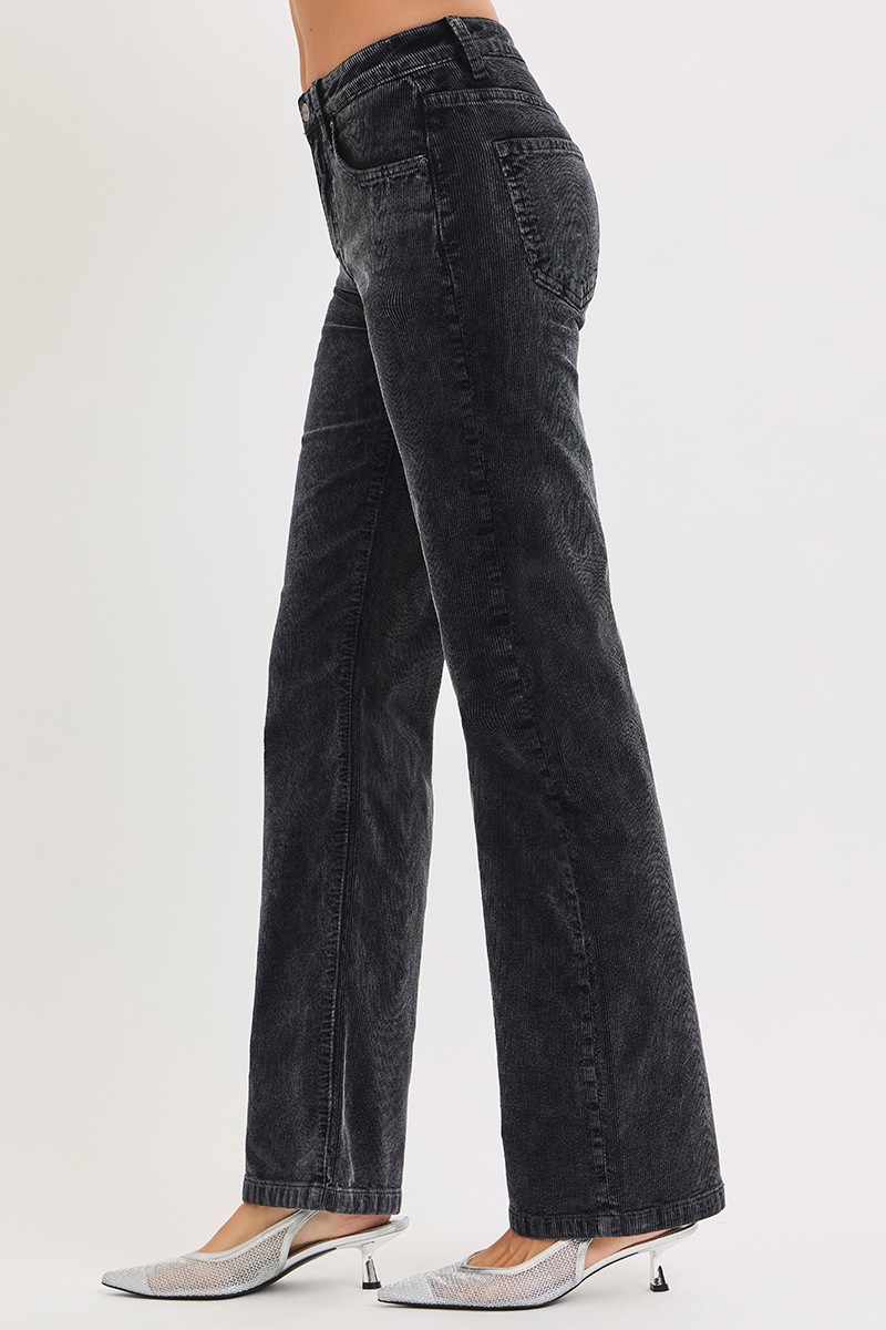 Risen Tummy Control Mid Rise Straight Leg Corduroy Pants