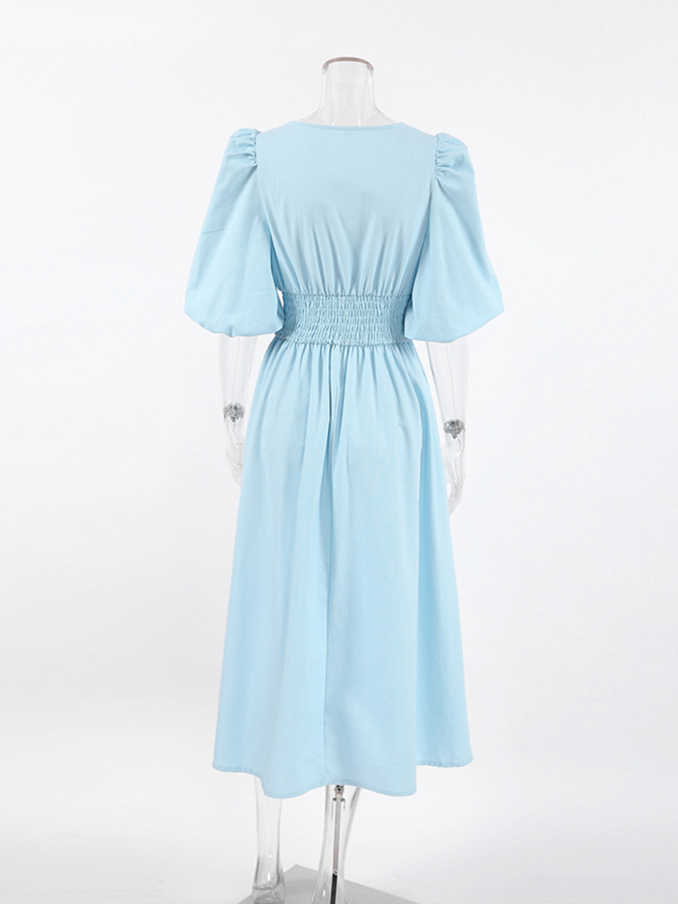 Smocked Puff Sleeve Midi Dress