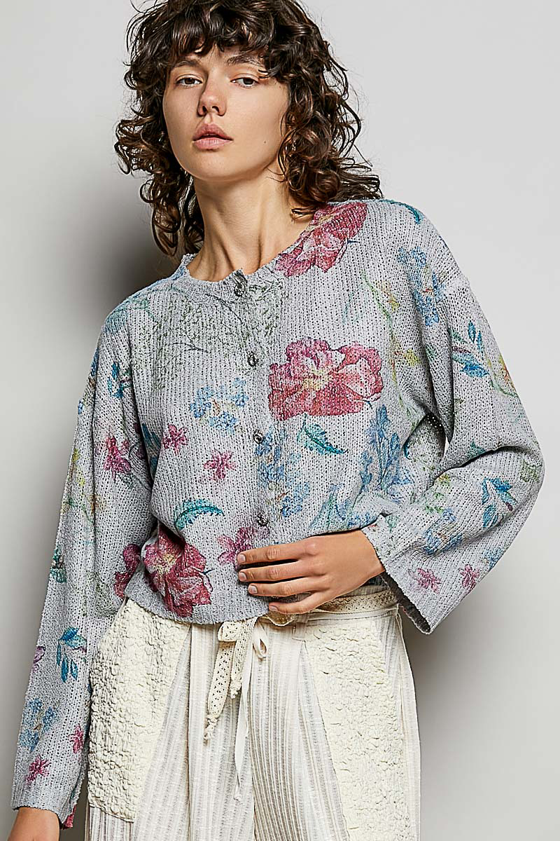 Pol Floral Print Button-Down Knit Cardigan