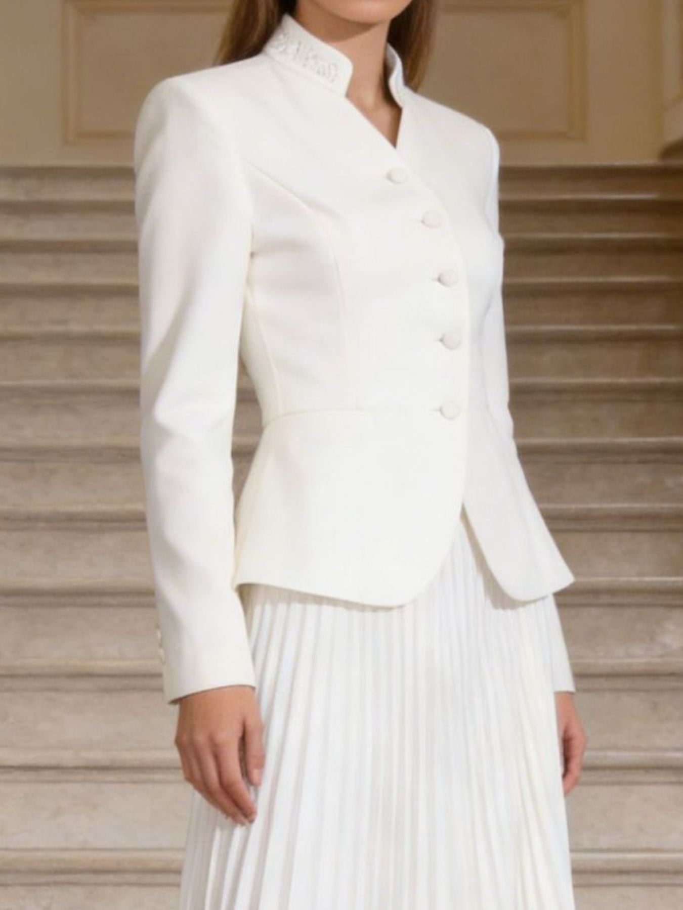 Button Up Long Sleeve Top And Pleated Skirt Set